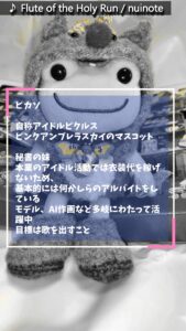 ピカソ 自称アイドルピクルス ピンクアンブレラスカイのマスコット 秘書の妹 本業のアイドル活動では衣装代を稼げないため、 基本的には何かしらのアルバイトをしている モデル、AI作画など多岐にわたって活躍中 目標は歌を出すこと